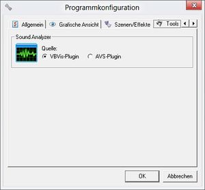 | Aktualisierungsintervall des Sound Analyzer | Zeitintervall, nach dem neue Audiodaten von WinAmp geholt werden | 50 ms | Größeres Intervall kann bei schwachen Rechnern Performance verbessern | |