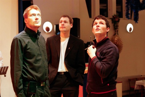 Dann ging die Show los. Christian war die ganze Zeit beschäftigt. Leere Headset Batterien, sowie defekte Steckernetzteile raubten ihm die Ruhe. Arne, Stefan und Matthias hingegen, schauten sich die Show mit den Büttenreden und Tanzaufführungen an. Die Show war bestückt mit vielen Effekten. Überraschend war, was mit ein paar Scheinwerfern, und ohne den Einsatz von vielen Scannern (es waren nur zwei TS-255) möglich ist. Gerade die Scanner wurden von Arne und Matthias neidisch angeschaut. Jeder von den beiden hat selber vier Stück, dennoch sind die zwei von Christian eine Besonderheit. Nach dem Lüfterumbau sind die Scanner wirklich wesentlich leiser geworden. Eine tolle Leistung. Eine Dokumentation zu Christians Lüfterumbau findet sich hier.