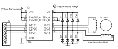 kommen wir zu einem sehr wichtigen Punkt. Da ich hier nicht mit Strombegrenzung arbeite, brauche ich für die Motoren nur 5V mit viel Leistung. Optimal wären so ca. 2,4A, für den Fall das beide Motoren im Halb-Schritt sind(hier werden alle 4 Phasen mit max. Leistung bestromt)!!! Die hab ich aber nicht gefunden. Am besten geht ein Netzteil einer externen HDD mit 1x 12V & 1x 5V. Die 12V nehme ich für den Tranceiver, und die 5V für die Treiber der Motoren! Das NT was ich gewählt habe hat auf beiden Ausgängen ca. 2A, das sollte reichen.