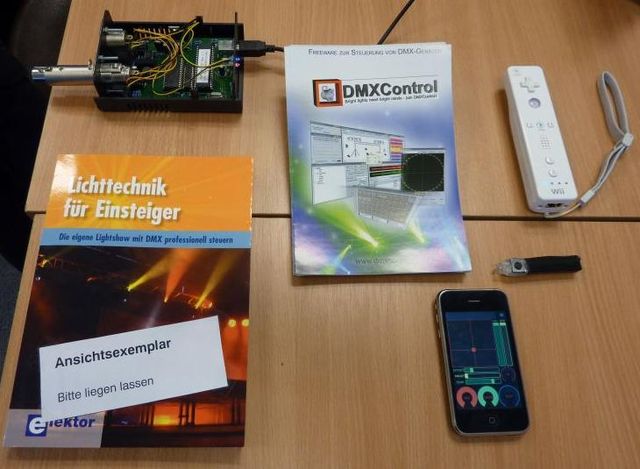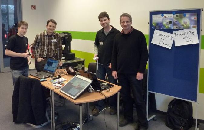 Wir haben dadurch herausgestochen, dass wir den Geist der jungen Leute durch Kreativität und Verspieltheit demonstriert haben. Unser Stand hat den Besuchern viel Spaß gemacht. Die wichtigsten Ausstellungsstücke (natürlich neben DMXControl) waren ein iPhone, eine WiiMote und unser Buch "Lichttechnik für Einsteiger" (http://www.dmxbuch.de) Bezüglich des auch zu sehenden Interfaces von Digital Enlightenment (http://www.digital-enlightenment.de) haben wir immer richtigerweise geantwortet: