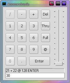 Da das Kommandozeile_DMXC2 doch sehr an einen Taschenrechner erinnert, habe ich mir ein entsprechendes Projekt gesucht und bin bei "Mr. Unknow" fündig geworden (Vielen Dank an ihn!): Taschenrechner